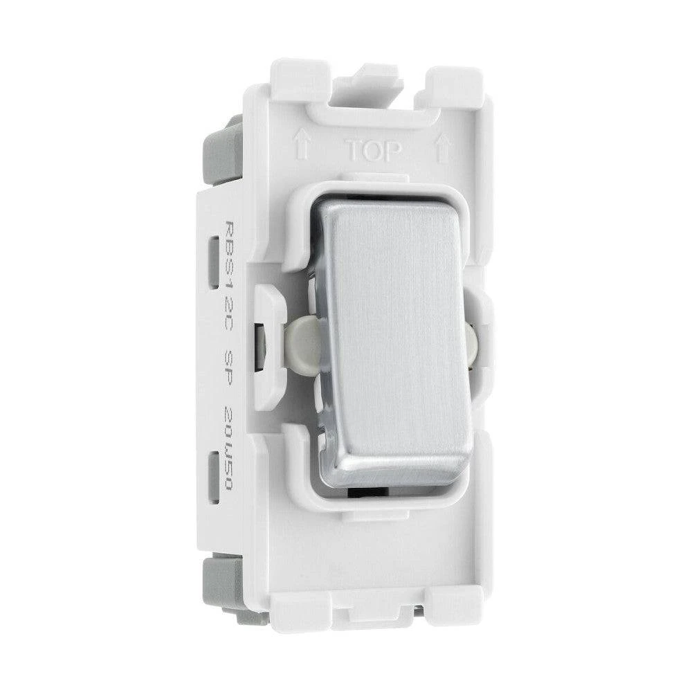 The BG Electrical RBS12C is a 20 Amp, 2 Way Single Pole grid module with a brushed steel rocker. Compatible with the BG Nexus Metal, and BG Screwless grid range, grid modules enable you to customise your own switch, by combining three elements, grid plate, grid frame and grid module.