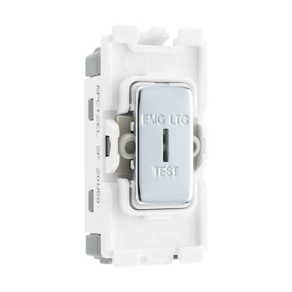 BG Electrical Polished Chrome 20AX 2 Way Key Grid Switch Printed ‘EMG LGT TEST’ RPC12EL