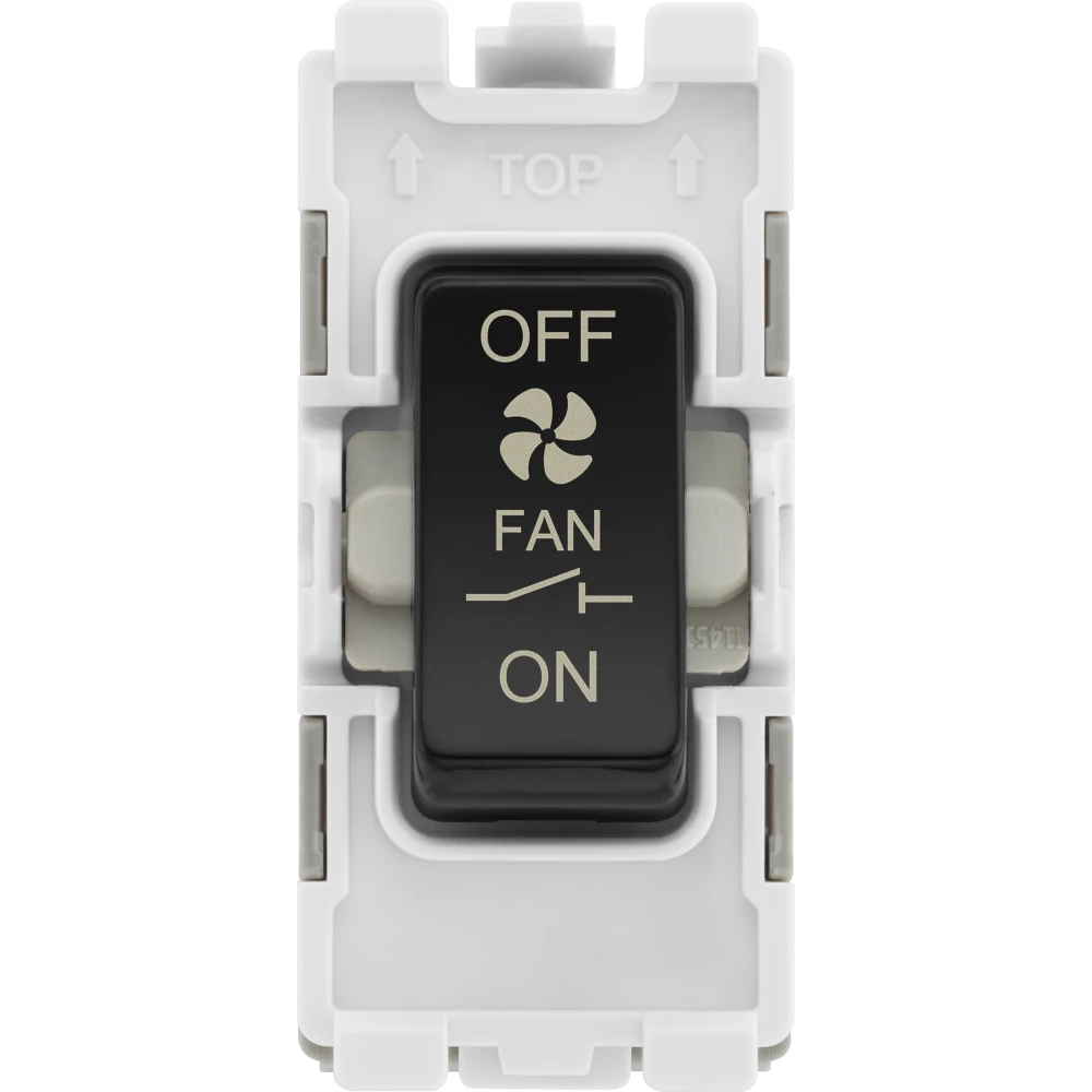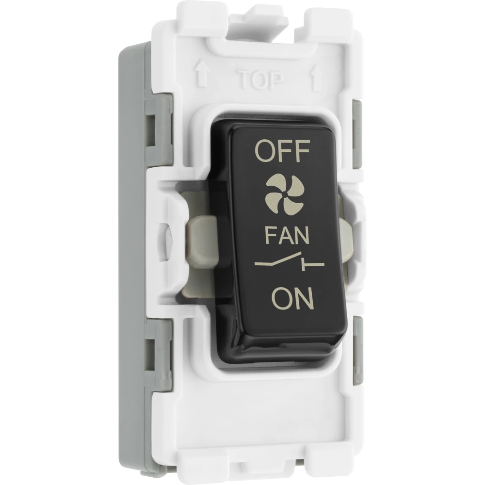 The BG Electrical RPCDB15 is a 10 amp fan isolator grid module with a black rocker. Compatible with the BG Evolve grid range, grid modules enable you to customise your own switch, by combining three elements, grid plate, grid frame and grid module.