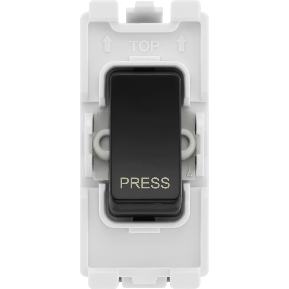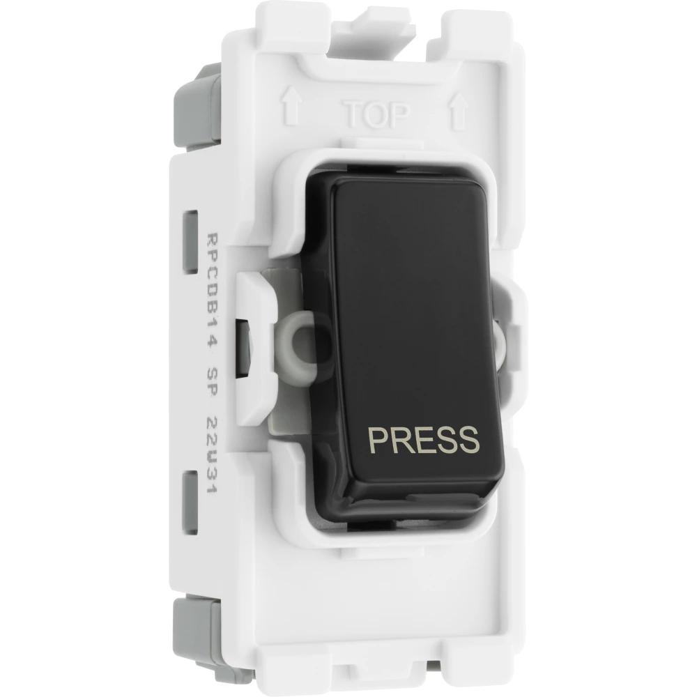 The BG Electrical RPCDB14 is a 20 Amp, retractive grid module with a black rocker marked ‘Press’. Compatible with the BG Evolve grid range, grid modules enable you to customise your own switch, by combining three elements, grid plate, grid frame and grid module.