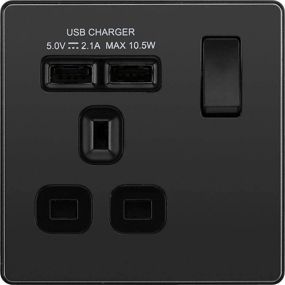 BG Evolve Black Chrome 13A Single USB Socket PCDBC21U2B