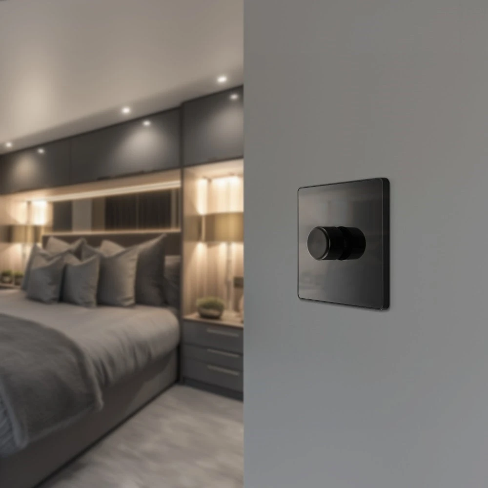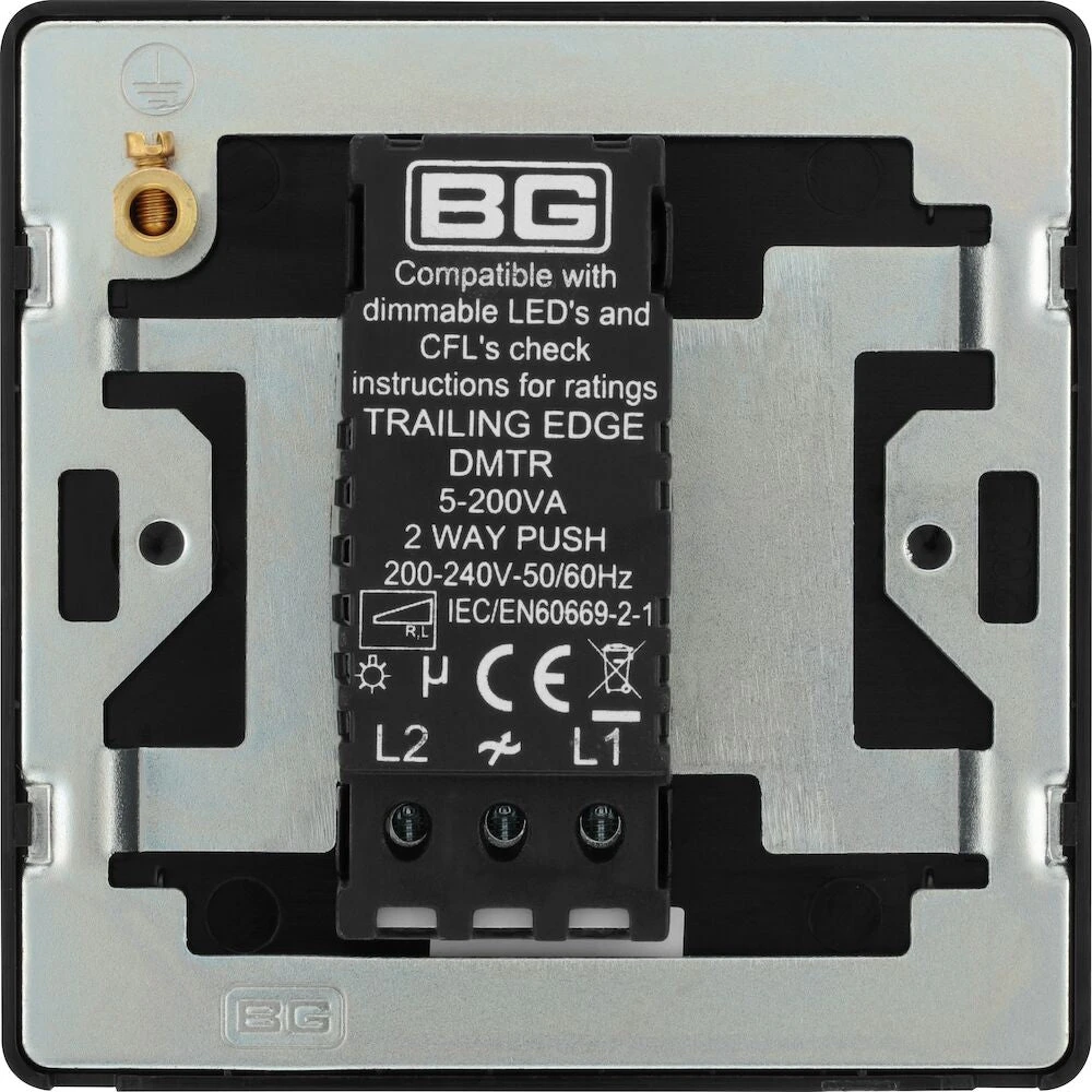 The PCDBC81B is a 1G dimmer switch from the BG Evolve range, finished in black chrome. The BG Evolve range is new on the outside with its polycarbonate front plates but has the same trusted internal technology found in the Nexus Metal range. The Evolve range gives you the ease and flexibility to remove and change the front plates, allowing on-trend finishes without losing the level of quality and reliability.