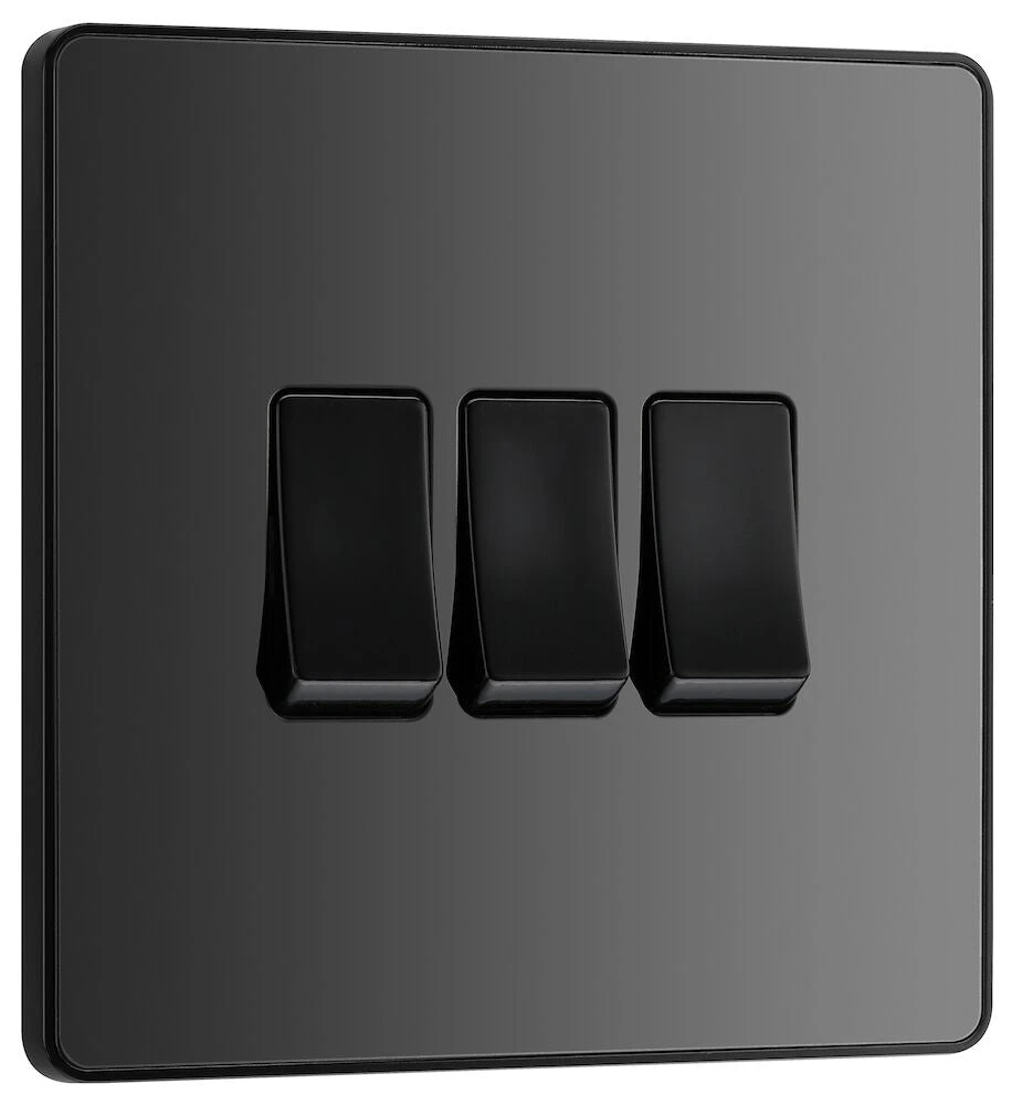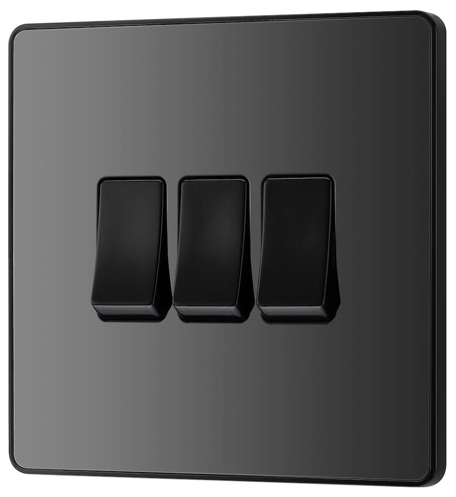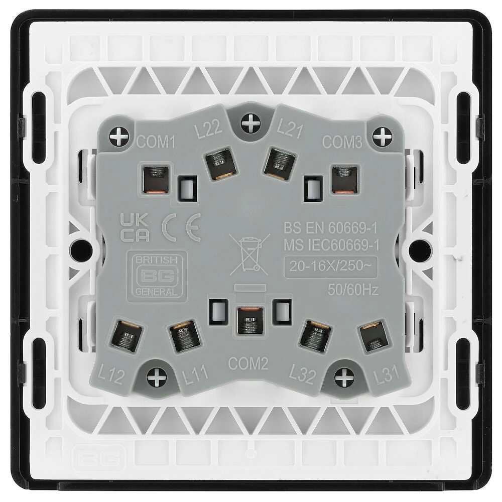 The PCDBC43B is a 3G 2W light switch from the BG Evolve range, finished in black chrome. The BG Evolve range is new on the outside with its polycarbonate front plates but has the same trusted internal technology found in the Nexus Metal range. The Evolve range gives you the ease and flexibility to remove and change the front plates, allowing on-trend finishes without losing the level of quality and reliability.