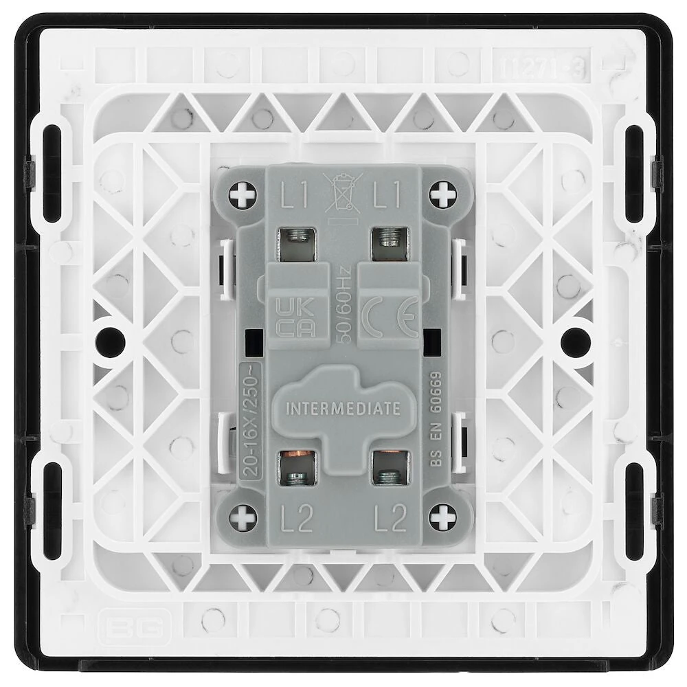 The PCDBC13B is a intermediate light switch from the BG Evolve range, finished in black chrome. The BG Evolve range is new on the outside with its polycarbonate front plates but has the same trusted internal technology found in the Nexus Metal range. The Evolve range gives you the ease and flexibility to remove and change the front plates, allowing on-trend finishes without losing the level of quality and reliability.