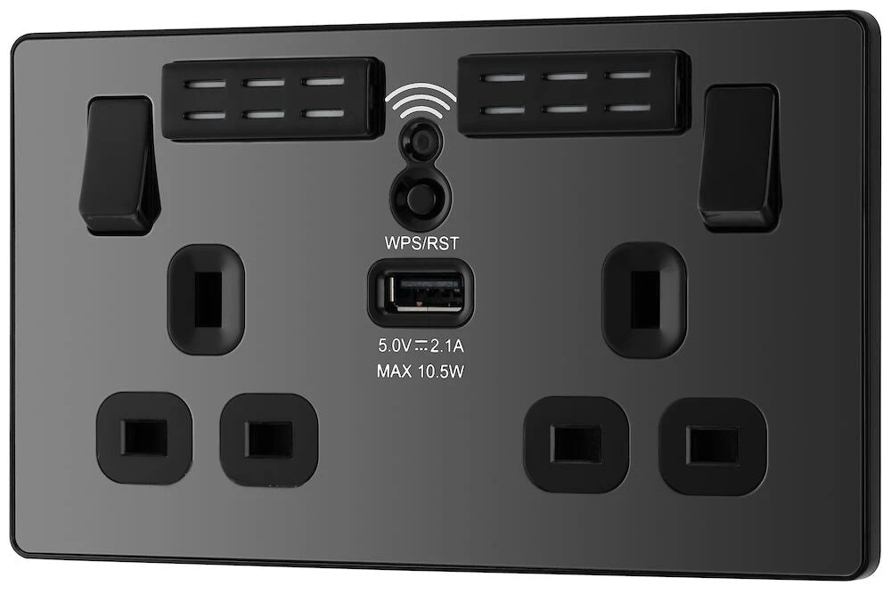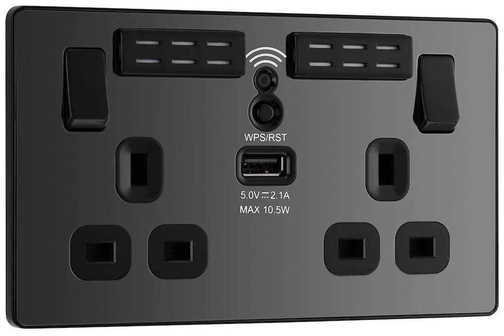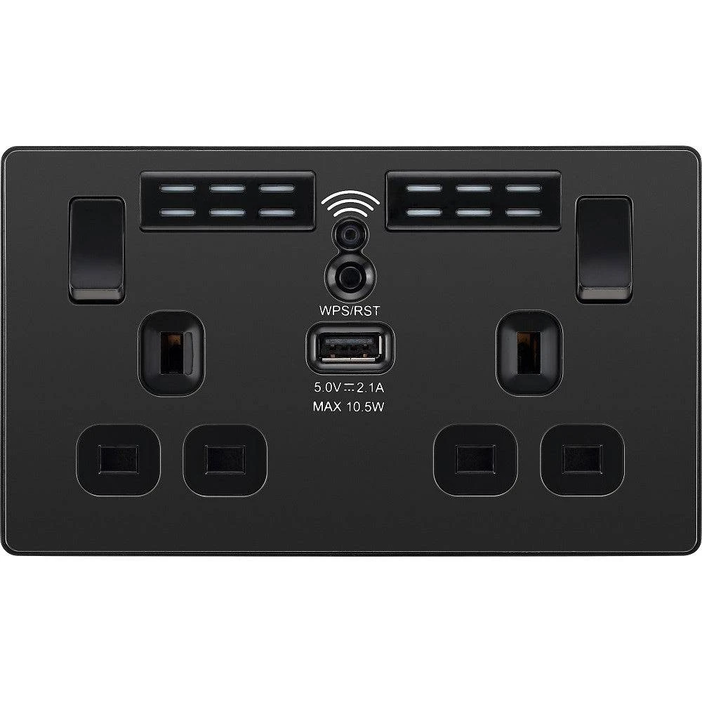 BG Evolve Black Chrome WiFi Extender With 13A Double USB Socket PCDBC22UWRB