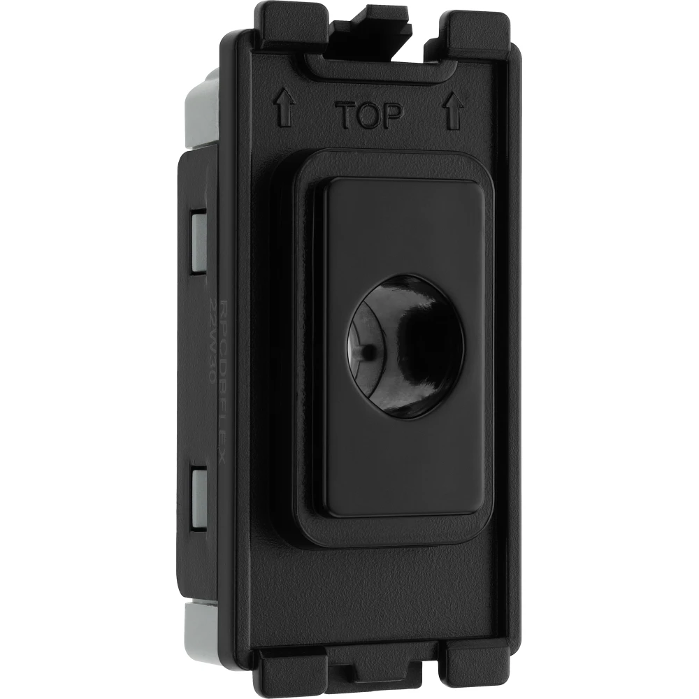 The BG Electrical RPCDBFLEX is a flex outlet grid module with a black front. Compatible with the BG Evolve grid range, grid modules enable you to customise your own switch, by combining three elements, grid plate, grid frame and grid module.