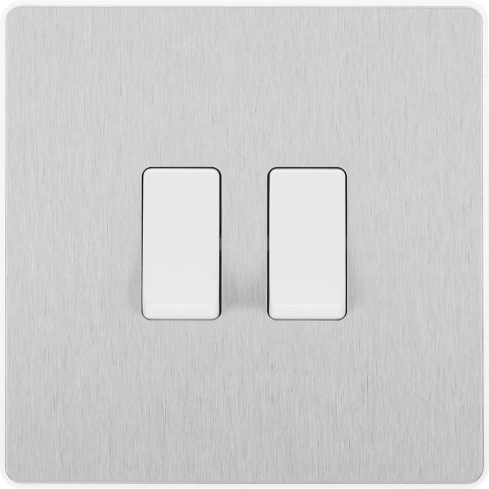 The PCDBS2GINTW is a 2G intermediate light switch from the BG Evolve range, finished in brushed steel and built using the BG Evolve Grid system. The BG Brushed Steel Evolve range is new on the outside with its polycarbonate front plate and contrast white frame, but has the same trusted internal technology as the BG Nexus Metal range.