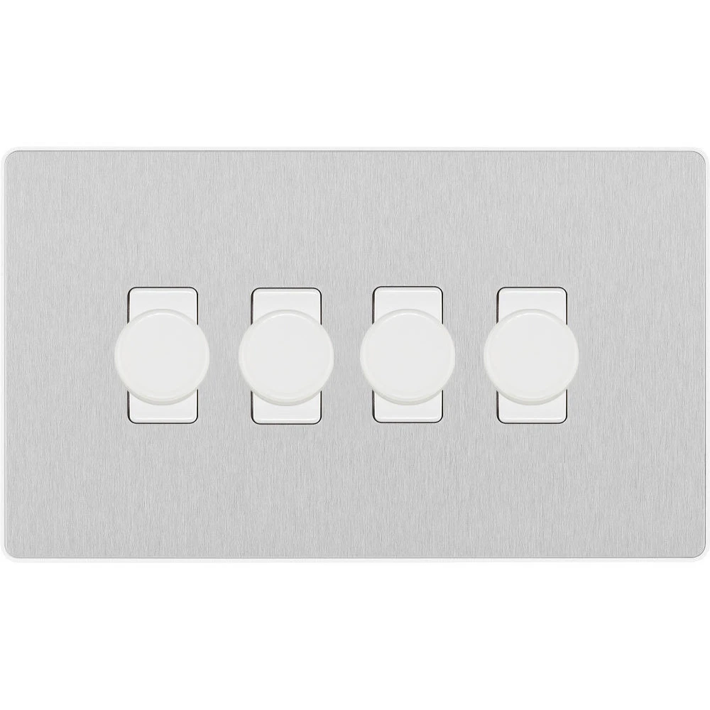 The PCDBS84W is a 4G dimmer switch from the BG Evolve range, finished in brushed steel and built using BG Evolve Grid system. The BG Brushed Steel Evolve range is new on the outside with its polycarbonate front plate and contrast white frame, but has the same trusted internal technology as the BG Nexus Metal range.