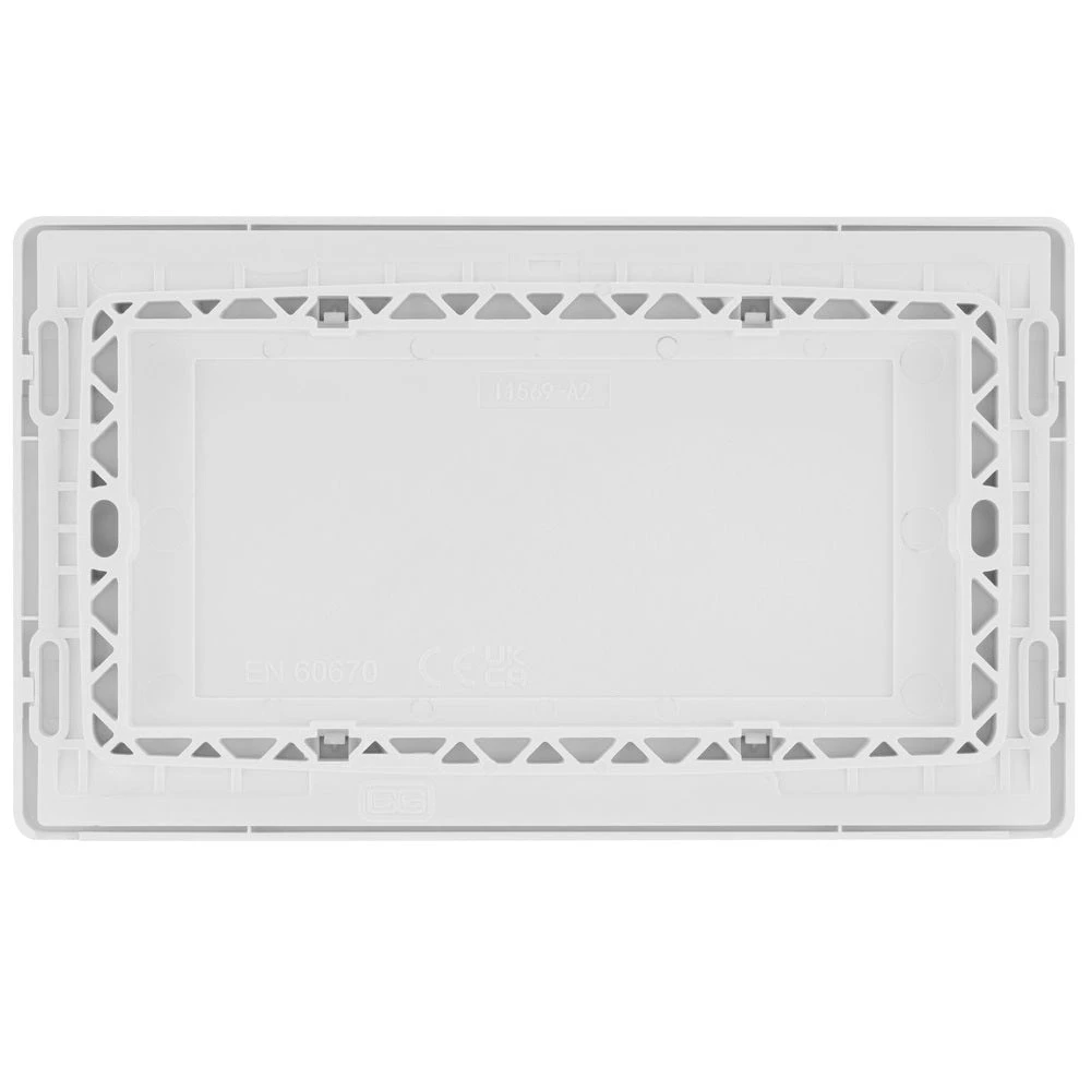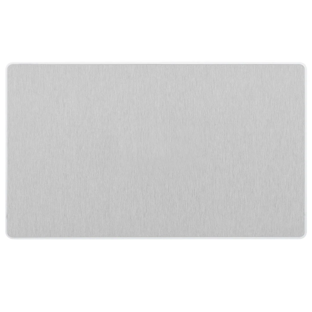 The PCDBS95W is a double blank plate from the BG Evolve range, finished in brushed steel. The BG Evolve range is new on the outside with a polycarbonate front plate and contrasting frame, but the inside is the same trusted technology as the BG Nexus Metal range. The brushed steel finish comes with contrasting white frame.