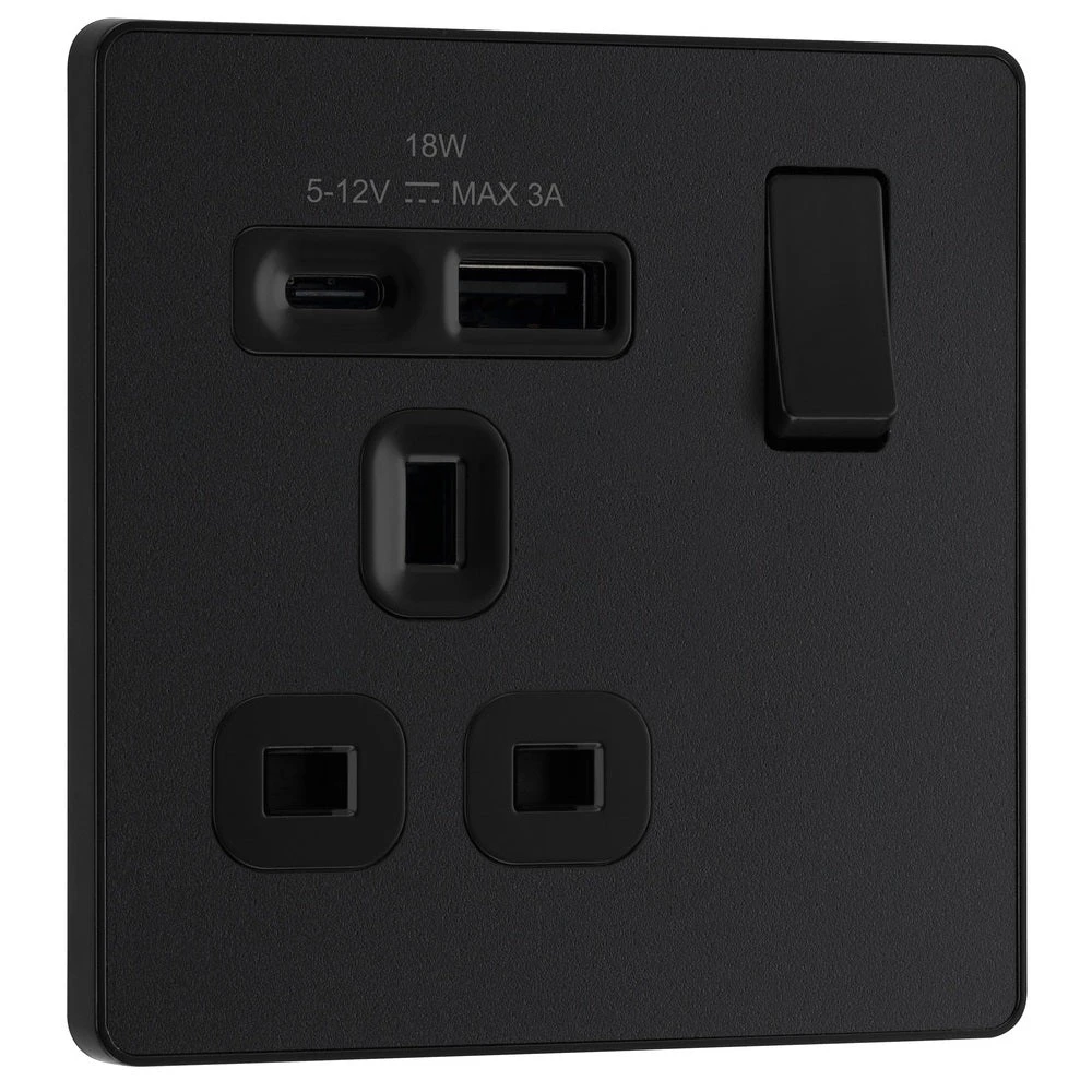 BG Evolve Matt Black 13A A+C USB Socket PCDMB21UAC18B