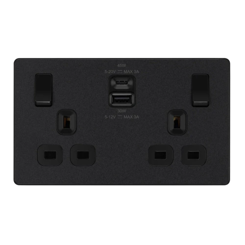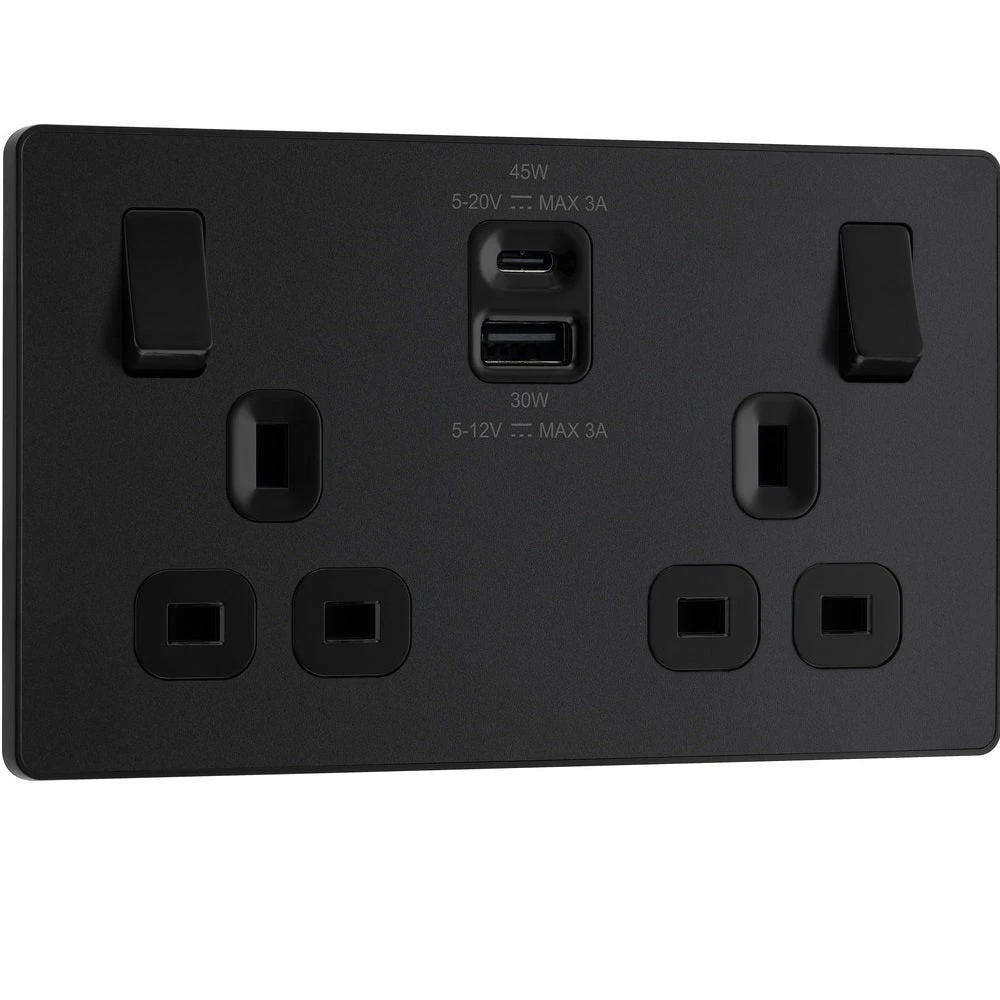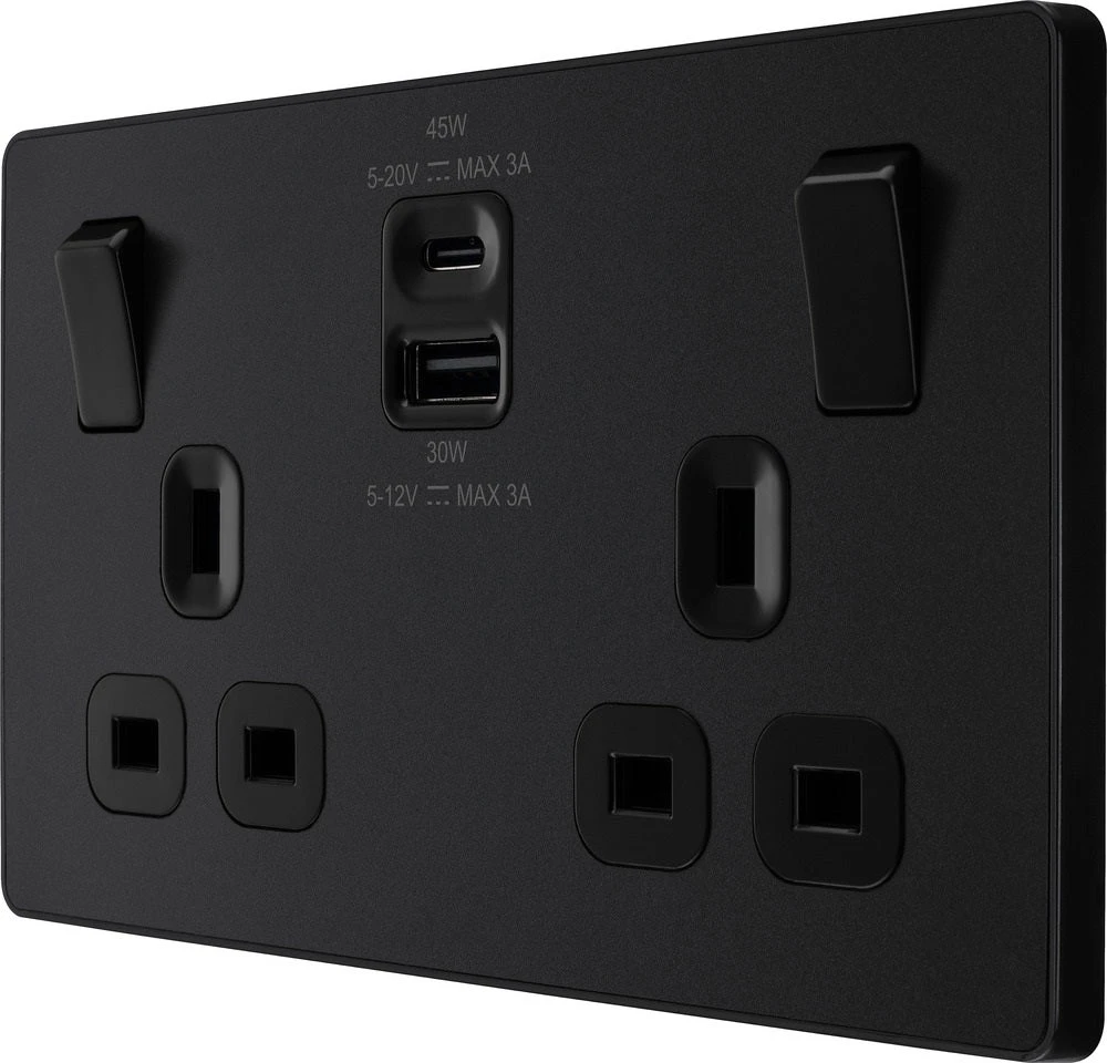 BG Evolve Matt Black 13A Double USB Socket With 45W A+C Ports PCDMB22UAC45B