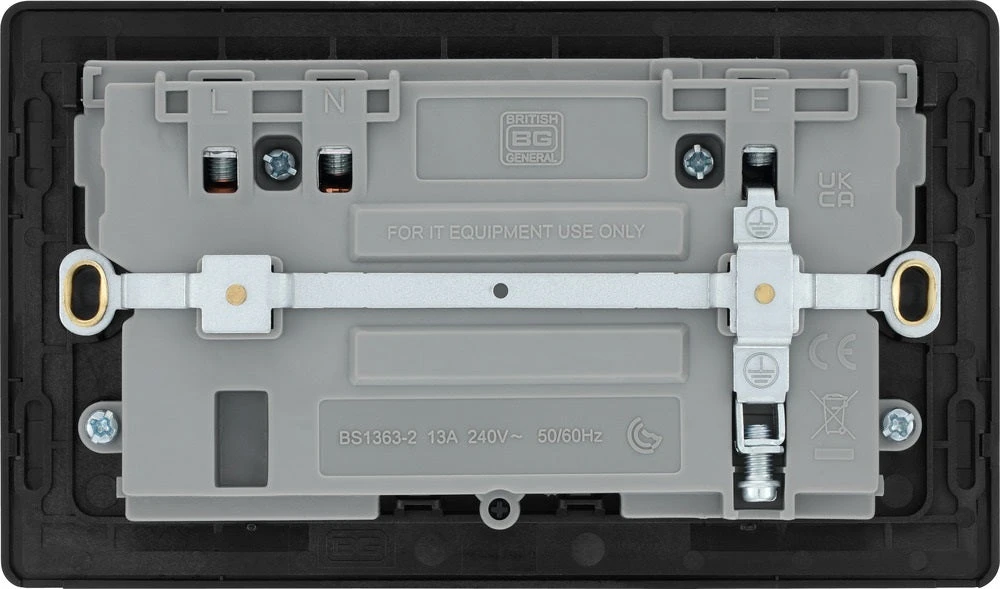 The PCDMB22UAC45B is a 13A double USB socket with 45W A+C ports from the BG Evolve range, finished in matt black. The BG Evolve range is new on the outside with its polycarbonate front plates and contrasting frame, but has the same internal technology as the BG Nexus Metal range. With interchangeable front plates, the Evolve range allows you to move with the trends without losing the level of quality and reliability.