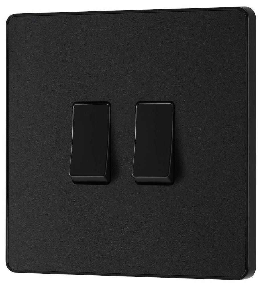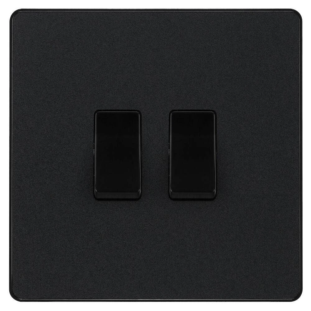 BG Evolve Matt Black 2G 2W Light Switch PCDMB42B