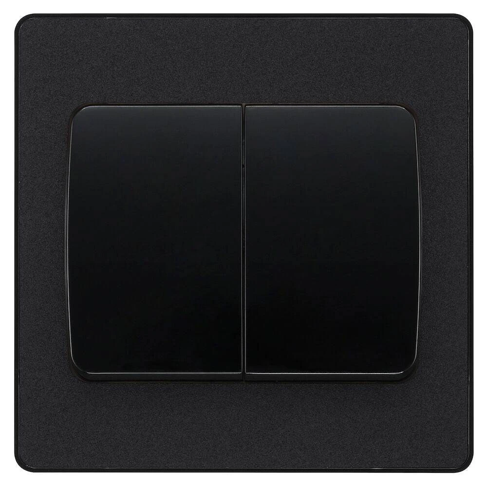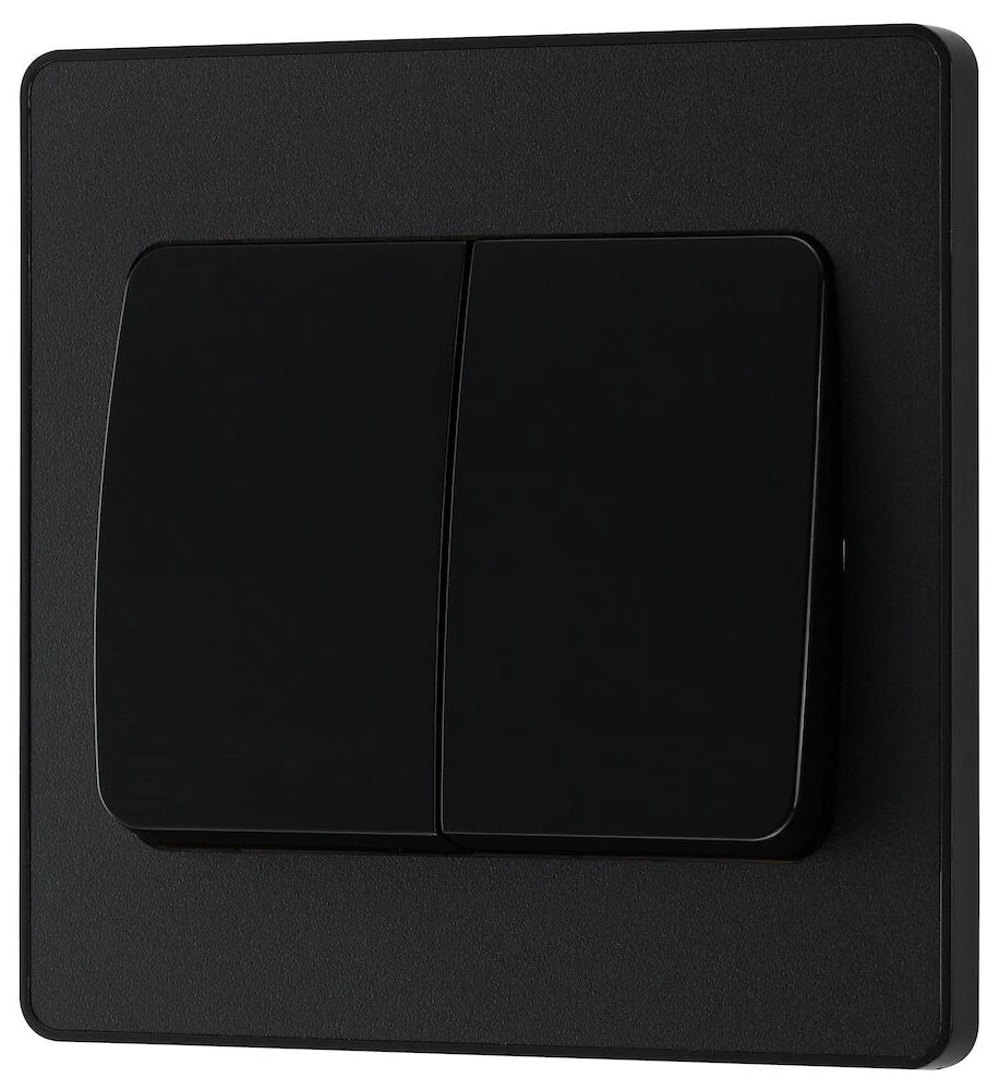 BG Evolve Matt Black 2G 2W Wide Rocker Light Switch PCDMB42WB