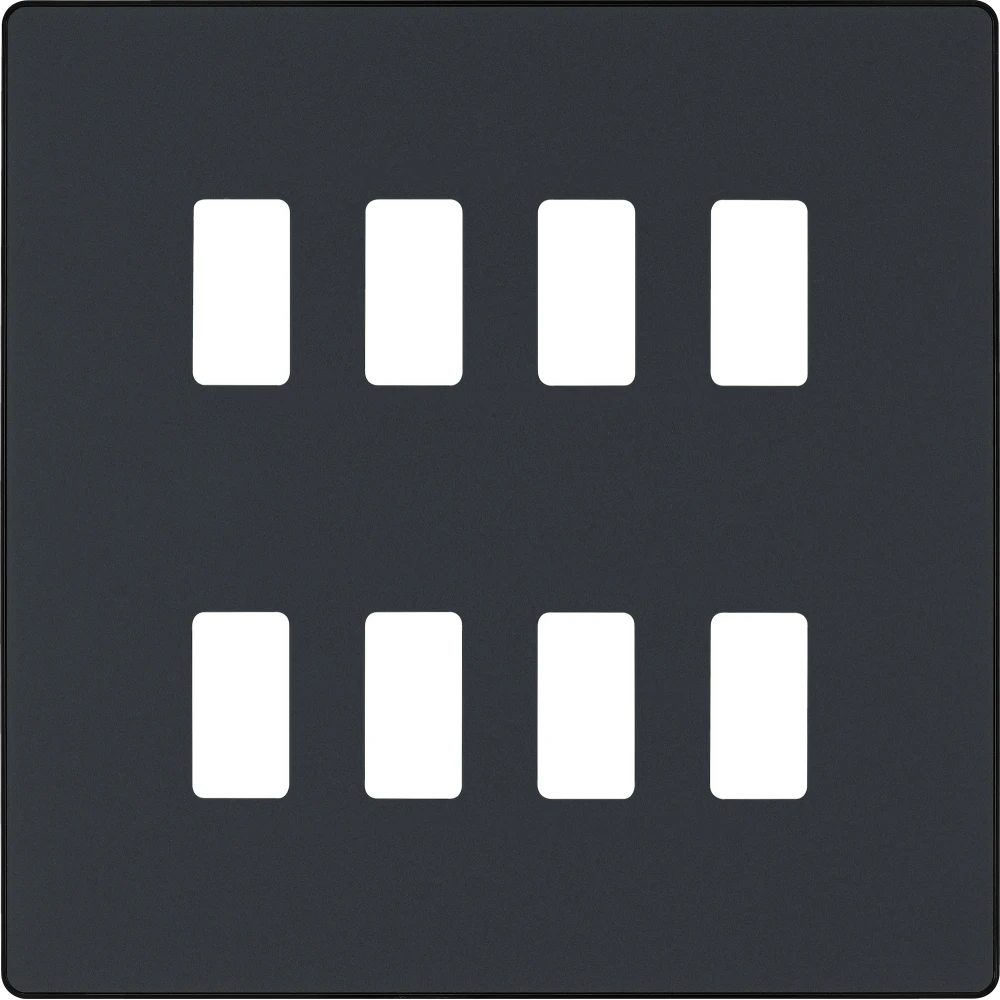 The RPCDMG8B is a 8G grid plate from the BG Evolve range, finished in matt grey. This Evolve range gives you the ease and flexibility to remove and change the front plates, allowing on-trend finishes without losing the level of quality and reliability.