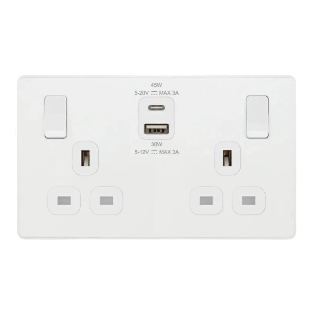 BG Evolve Pearl White 13A Double USB Socket With 45W A+C Ports PCDCL22UAC45W