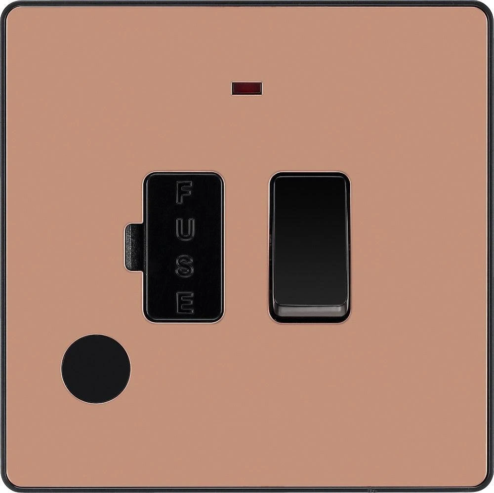 BG Evolve Polished Copper 13A Switched Spur With Neon And Flex Outlet PCDCP52B