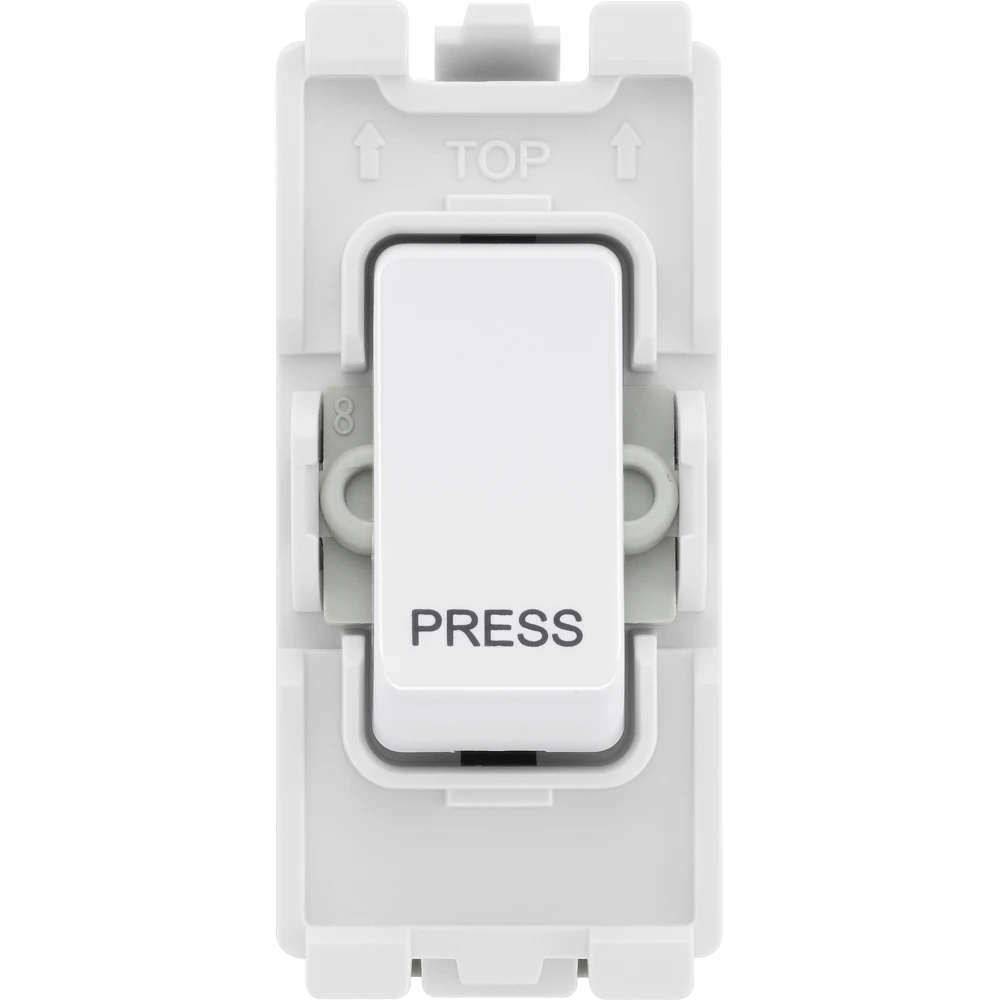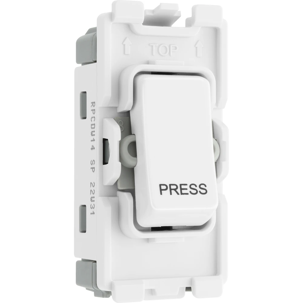 The BG Electrical RPCDW14 is a 20 Amp, retractive grid module with a white rocker marked ‘Press’. Compatible with the BG Evolve grid range, grid modules enable you to customise your own switch, by combining three elements, grid plate, grid frame and grid module.