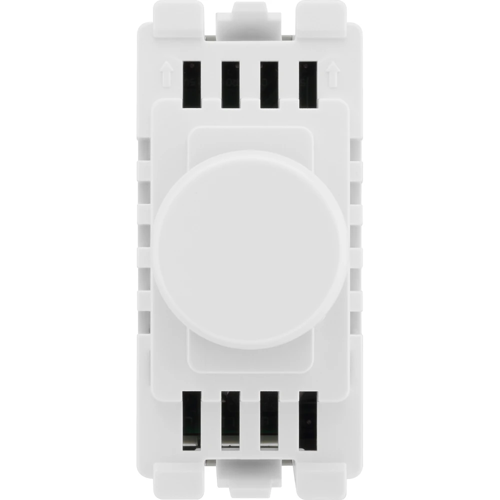 The BG Electrical RPCDWDTR is a 200W, 2 Way push on/off grid dimmer module with a white knob. Compatible with the BG Evolve grid range, grid modules enable you to customise your own switch, by combining three elements, grid plate, grid frame and grid module.