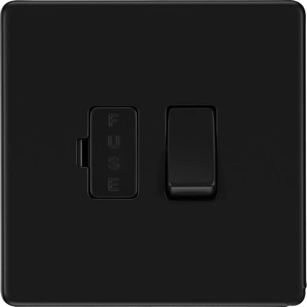 BG Flatplate Screwless Matt Black 13A Switched Spur FFB50