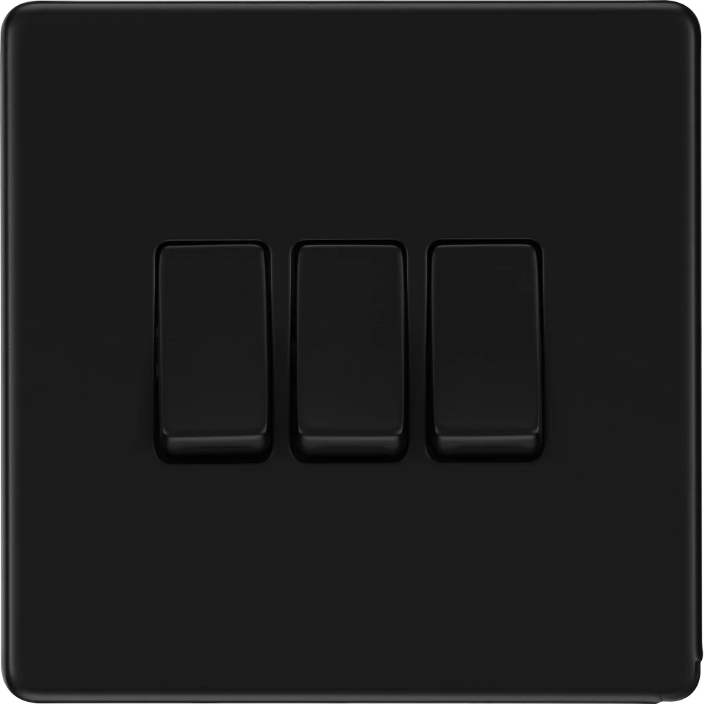 BG Flatplate Screwless Matt Black 3G 2W Light Switch FFB43