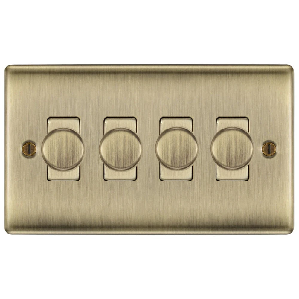 The NAB84 is a 4G dimmer switch from the BG Nexus Metal range, finished in antique brass and built using BG Nexus Grid system. This range of switches and sockets has been designed with a modern, slim profile and has a lightly lacquered surface to reduce fingerprint marks.