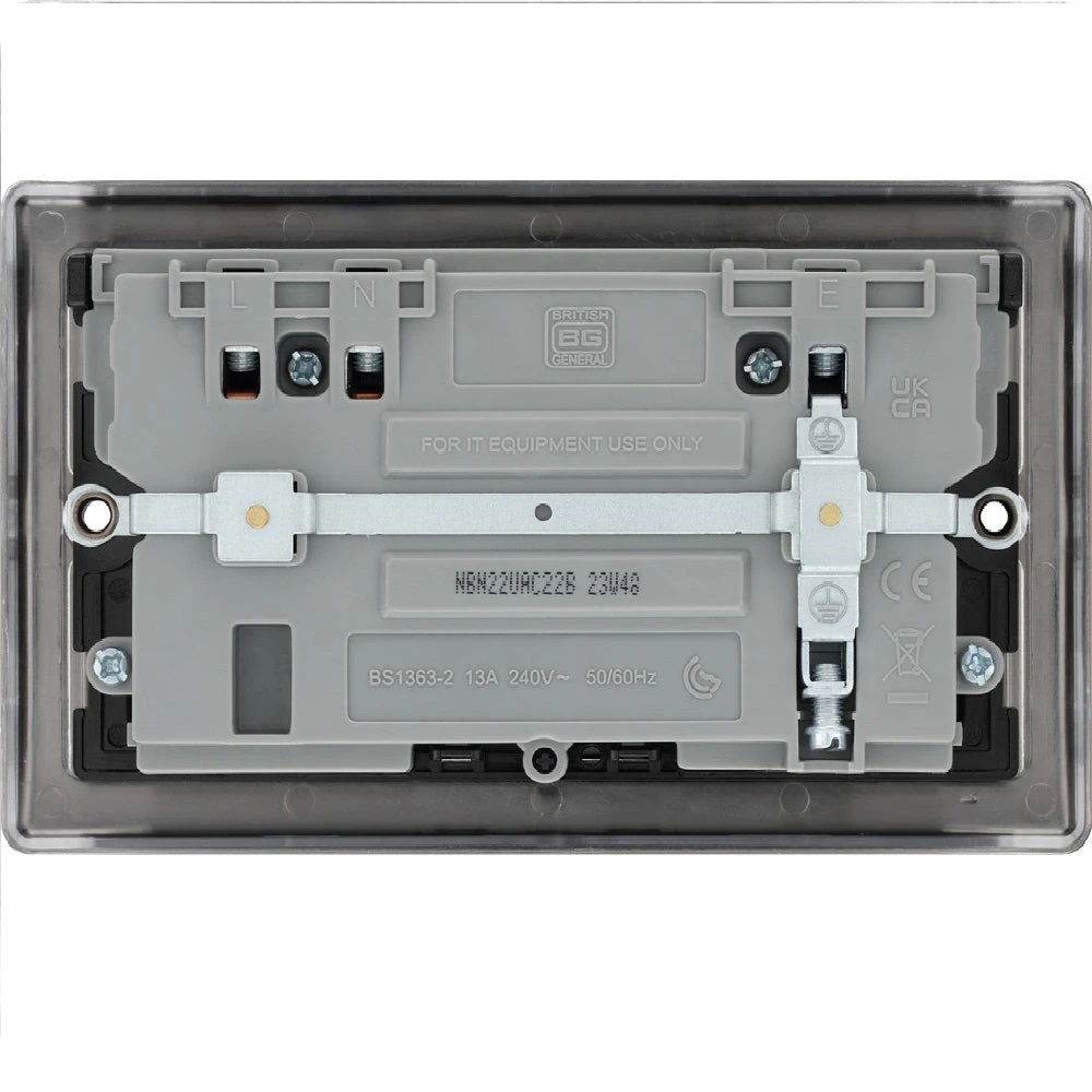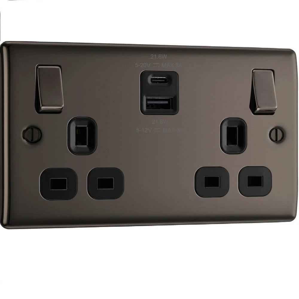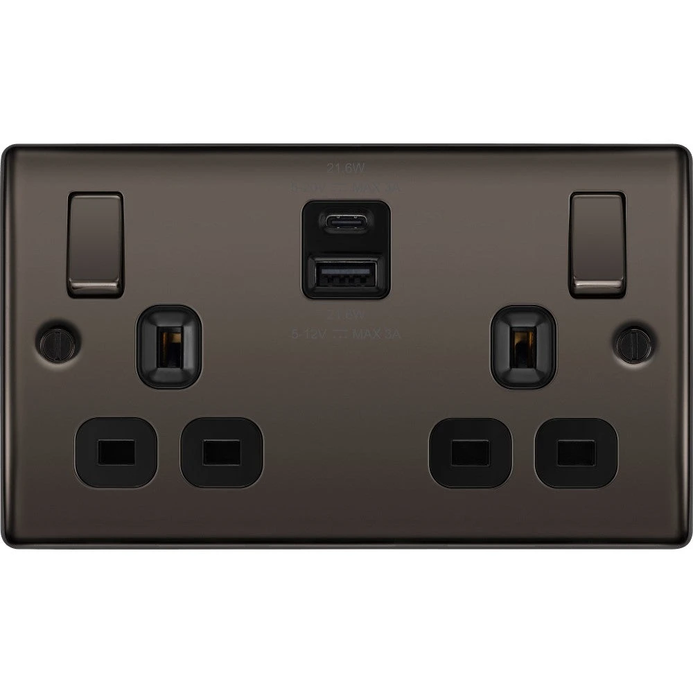 BG Nexus Metal Black Nickel 13A Double USB Socket With 22W A+C Ports NBN22UAC22B