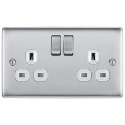 The NBS22W is a 13A double socket from the BG Nexus Metal range, finished in brushed steel with white inserts. This range of switches and sockets has been designed with a modern, slim profile and has a lightly lacquered surface to reduce fingerprint marks. The BG Nexus Metal range of switches and sockets comes with colour coded screws and has a full grid system to match.