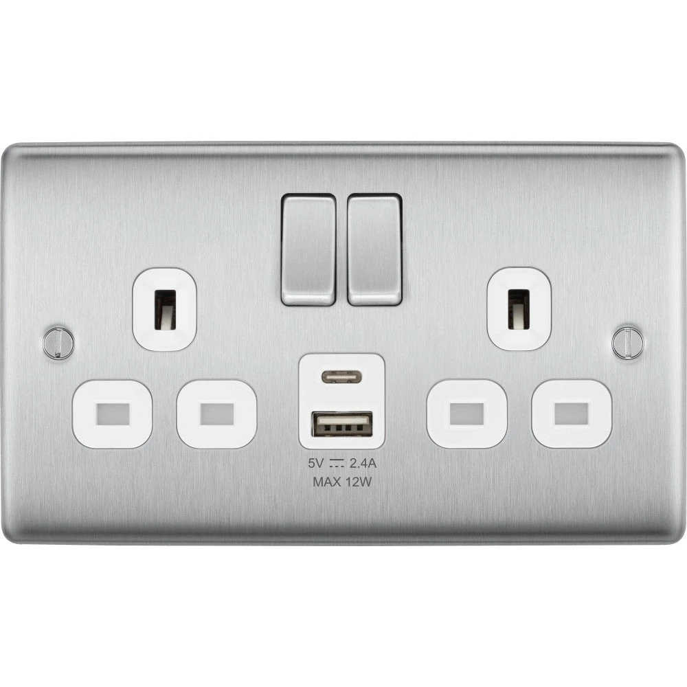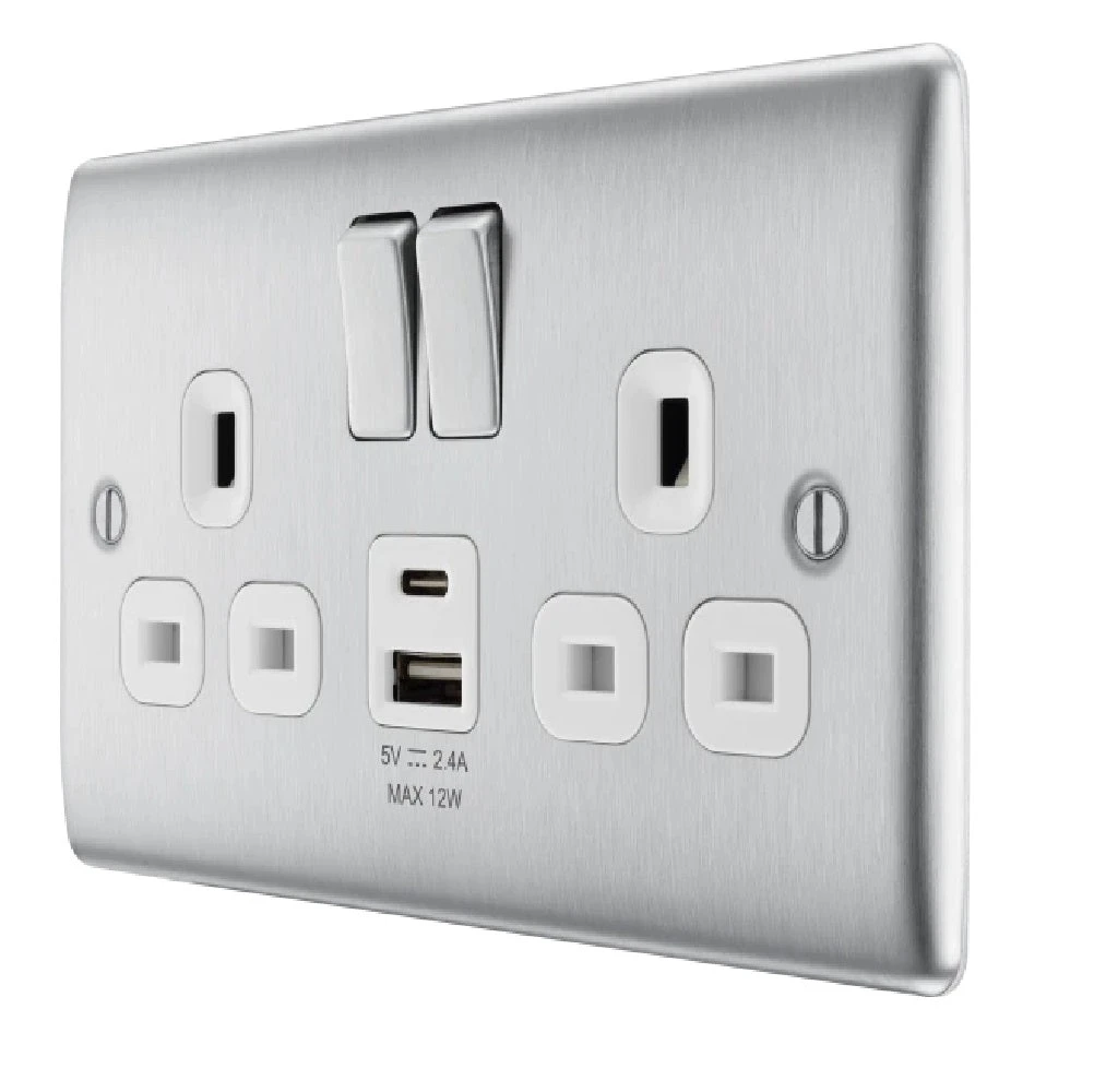 BG Nexus Metal Brushed Steel 13A Double USB Socket With 12W A+C Ports NBS22UAC12W
