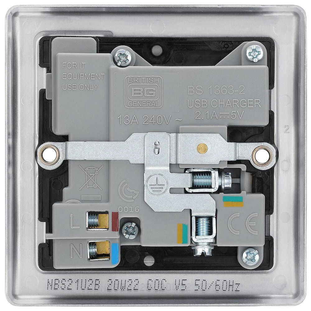 Be the first to review “BG Nexus Metal Brushed Steel 13A Single USB Socket NBS21U2B” Cancel reply