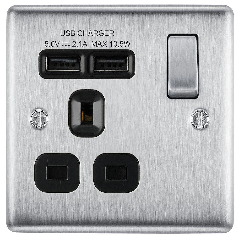 BG Nexus Metal Brushed Steel 13A Single USB Socket NBS21U2B