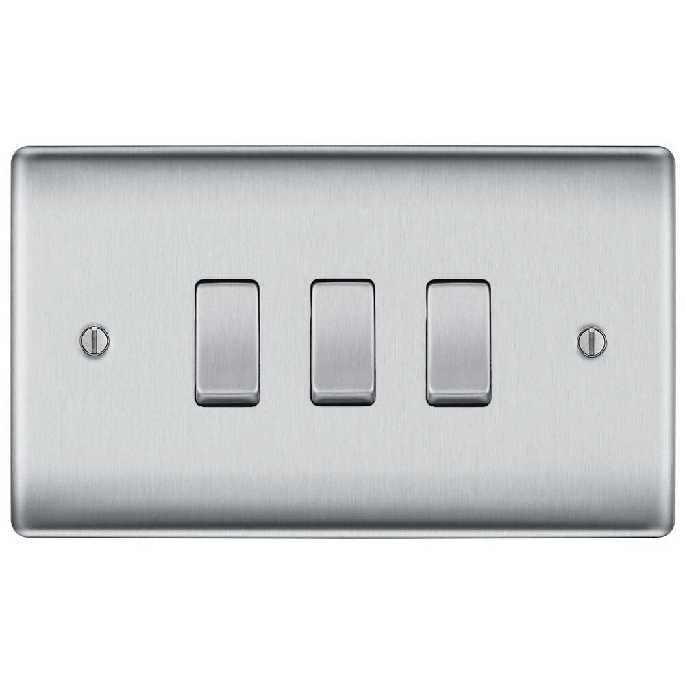 BG Nexus Metal Brushed Steel 3G 2W Light Switch NBS432