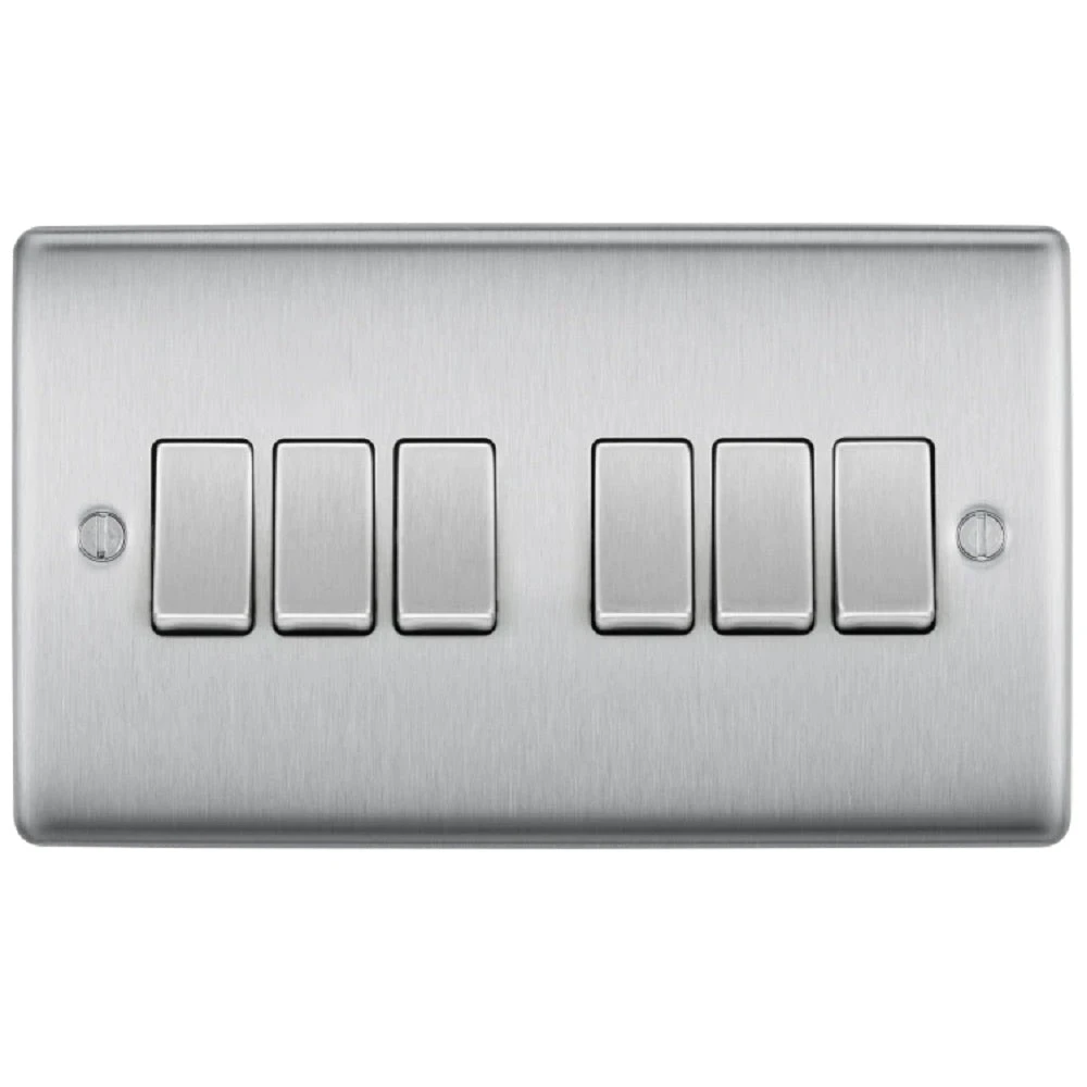 BG Nexus Metal Brushed Steel 6G 2W Light Switch NBS46