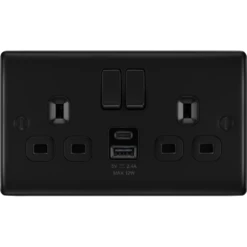 BG Nexus Metal Matt Black 13A Double USB Socket With 12W A+C NFB22UAC12B