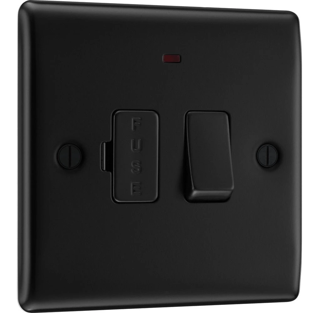 The NFB52 is a 13A switched spur with neon from the BG Nexus Metal range, finished in Matt Black. This range of switches and sockets has been designed with a modern, slim profile and has a lightly lacquered surface to reduce fingerprint marks.