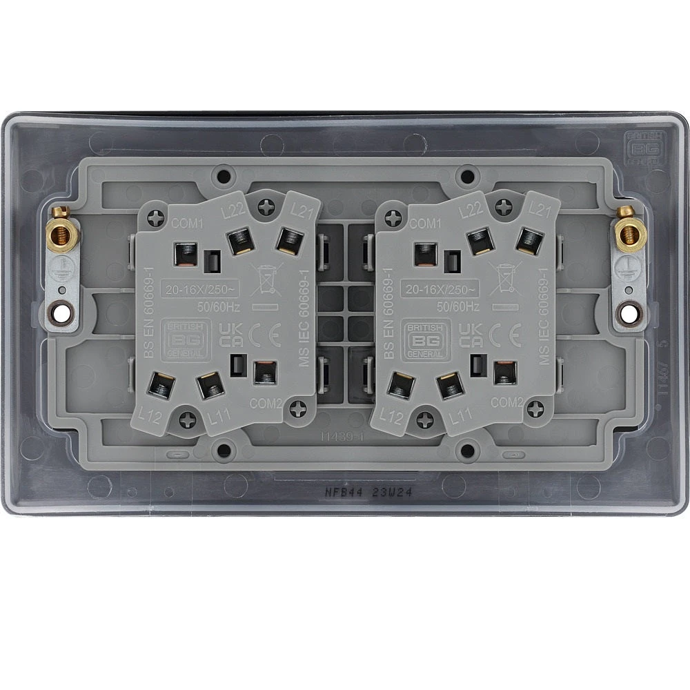 The NFB44 is a 4G 2W light switch from the BG Nexus Metal range, finished in Matt Black. This range of switches and sockets has been designed with a modern, slim profile and has a lightly lacquered surface to reduce fingerprint marks.