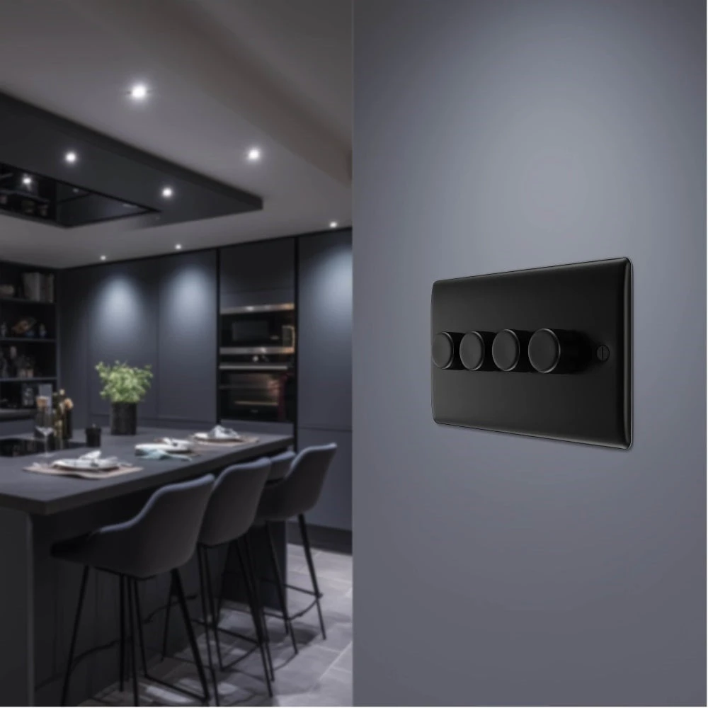 BG Nexus Metal Matt Black 4G Dimmer Switch NFB84
