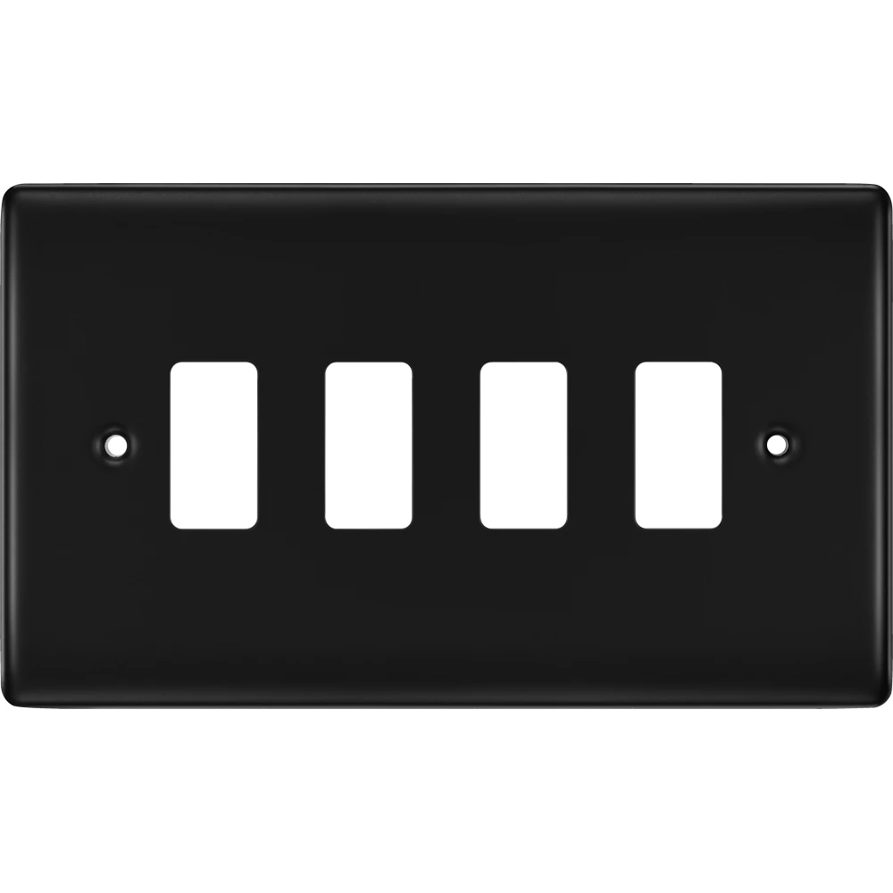 The RNFB4 is a 4G grid plate from the BG Nexus Metal range, finished in Matt Black. This range of switches and sockets has been designed with a modern, slim profile and has a lightly lacquered surface to reduce fingerprint marks.
