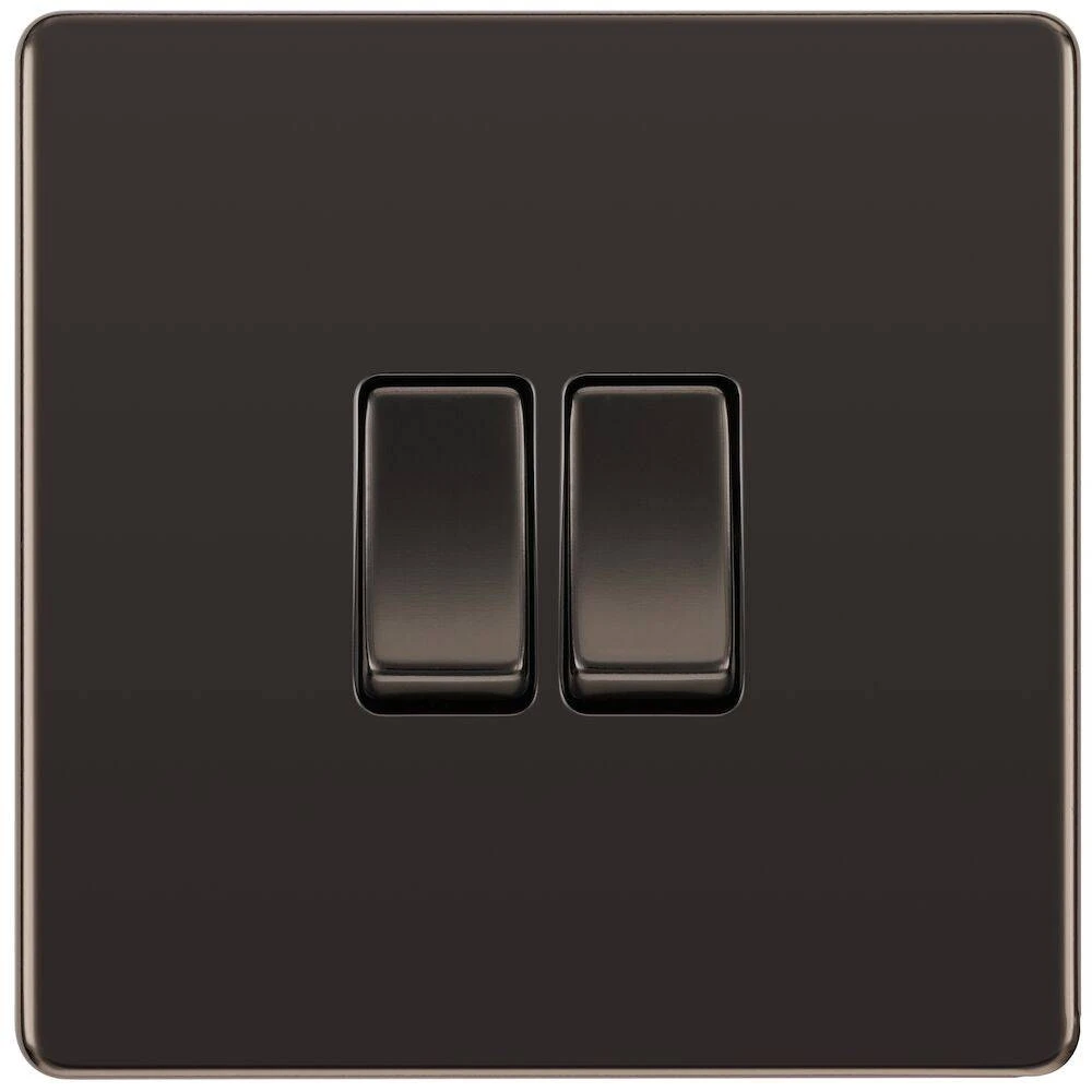 The FBN42 is a 2G 2W light switch from the BG Nexus Screwless range, finished in black nickel. With no visible screws on the decorative front plate, this collection has a low profile, projecting 3mm from the wall.