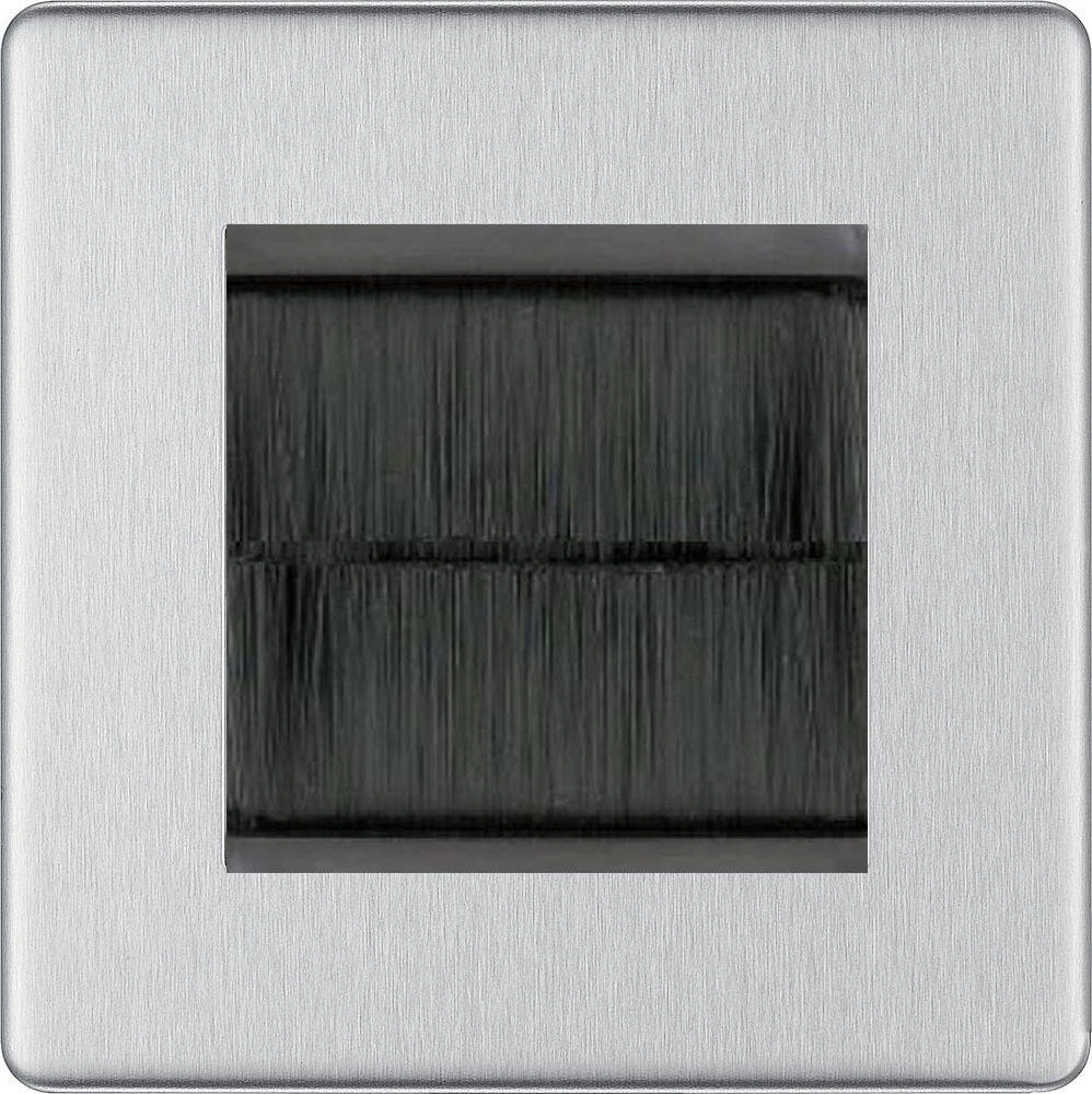 The FBSEMS2BR is a 2G cable brush outlet from the BG Nexus Screwless range, finished in brushed steel with black inserts and built using the BG Euro Modular system. With no visible screws on the decorative front plate, this range has a low profile easy clip on and off front plate.
