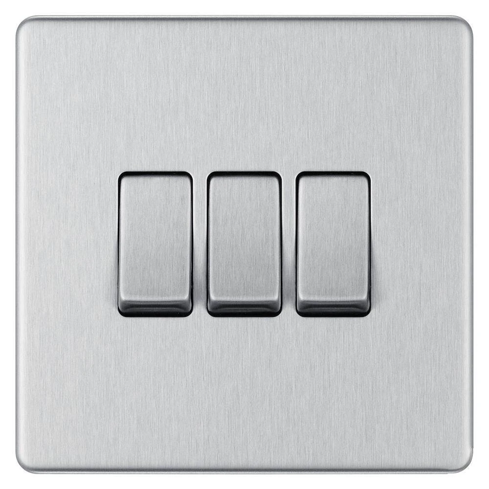 BG Nexus Screwless Brushed Steel 3G 2W Light Switch FBS43