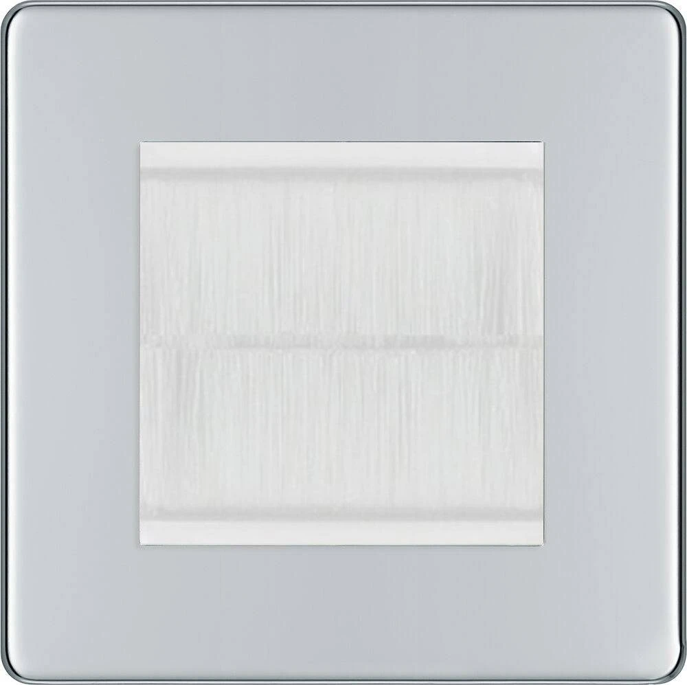 The FPCEMS2BRW is a 2G cable brush outlet from the BG Nexus Screwless range, finished in polished chrome with white inserts and built using the BG Euro Modular system. With no visible screws on the decorative front plate, the collection also has a low profile, projecting 3mm from the wall. This range also comes with a full grid system to match.