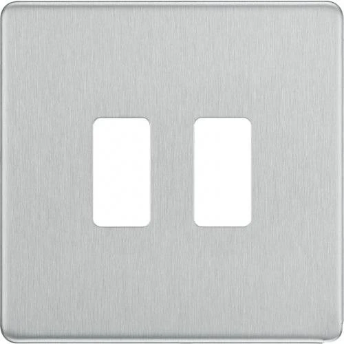 The RFBS2 is a 2G grid plate from the BG Nexus Screwless Flat Plate range, finished in brushed steel. The Grid range has been created to give you the flexibility to create bespoke combinations of switches.