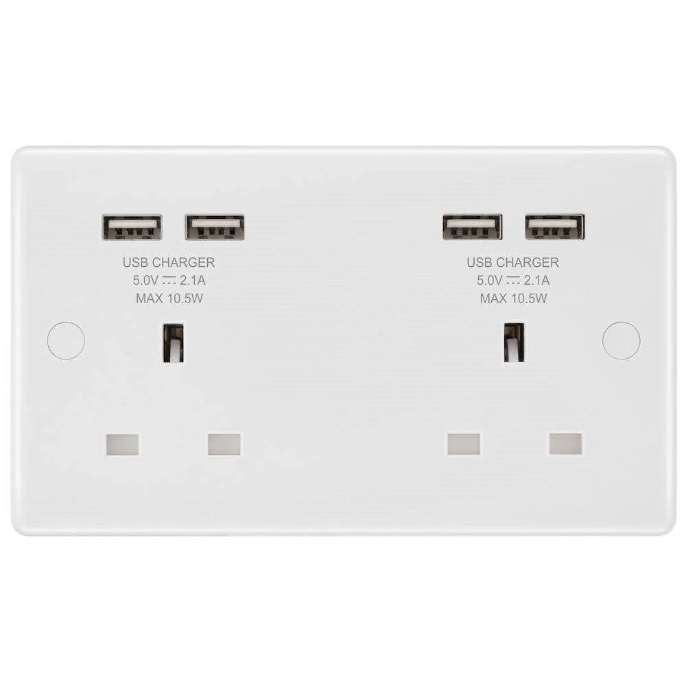 The 824U44 is a 13A double USB socket from the BG White Moulded range. White PVC switches and sockets are essential to any rewire or new build but this range from BG sets its self apart from the standard. With a rounded, convex plate and covers for the screws, this white PVC range has a clean, modern look.