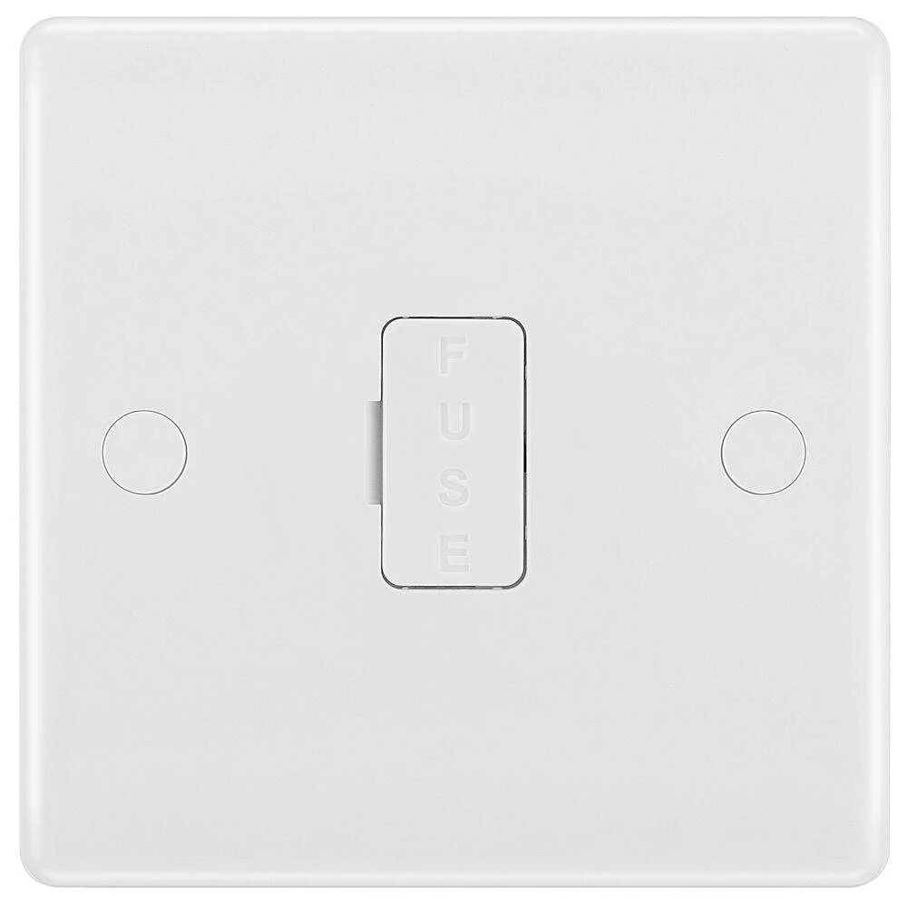 The 855 is a 13A unswitched spur with flex from the BG White Moulded range. White PVC switches and sockets are essential to any rewire or new build but this range from BG sets its self apart from the standard. With a rounded, convex plate and covers for the screws, this white PVC range has a clean, modern look.
