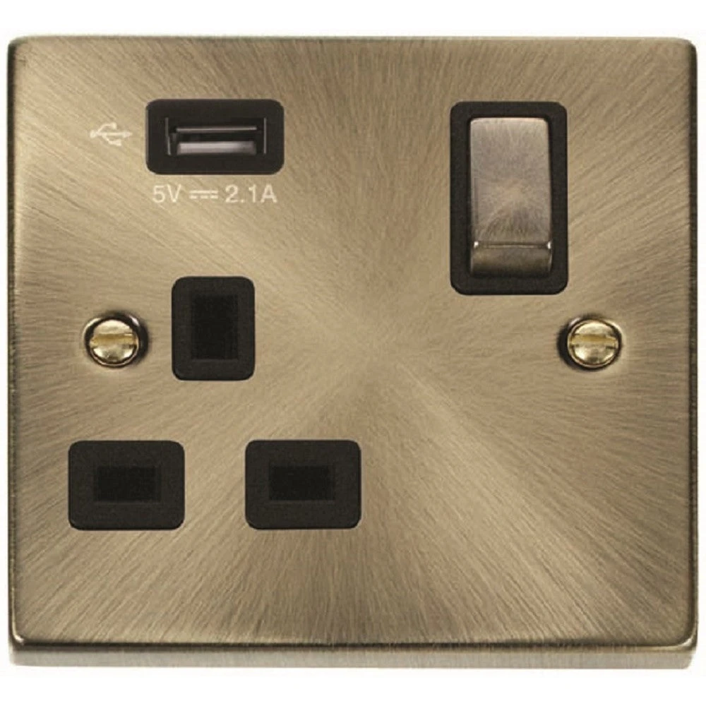 Click Deco Antique Brass 13A Single USB Socket VPAB571UBK