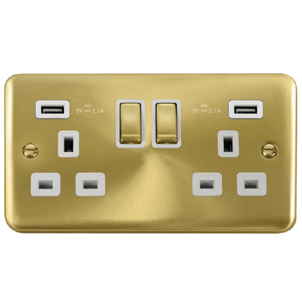 Click Deco Plus Satin Brass 13A Double USB Socket DPSB580WH