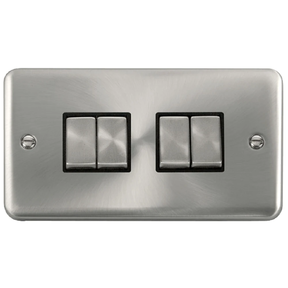 The DPSC414BK is a 4G light switch from the Click Deco Plus range by Scolmore, finished in satin chrome. Expertly crafted from durable stainless steel, the Click Deco Plus line boasts a unique raised design and smooth, rounded edges. Scolmore’s reputation for top-of-the-line, premium products is upheld with this fully comprehensive range.