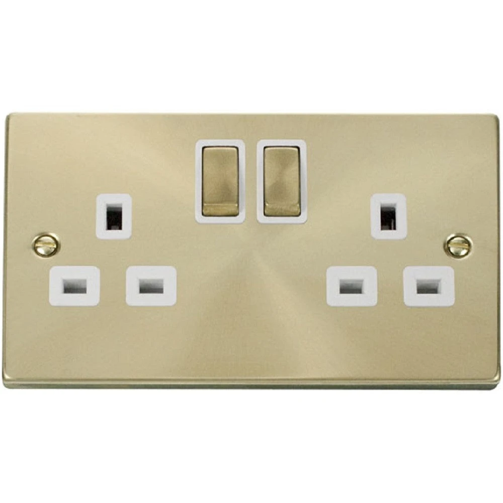 Click Deco Satin Brass 13A Double Socket VPSB536WH