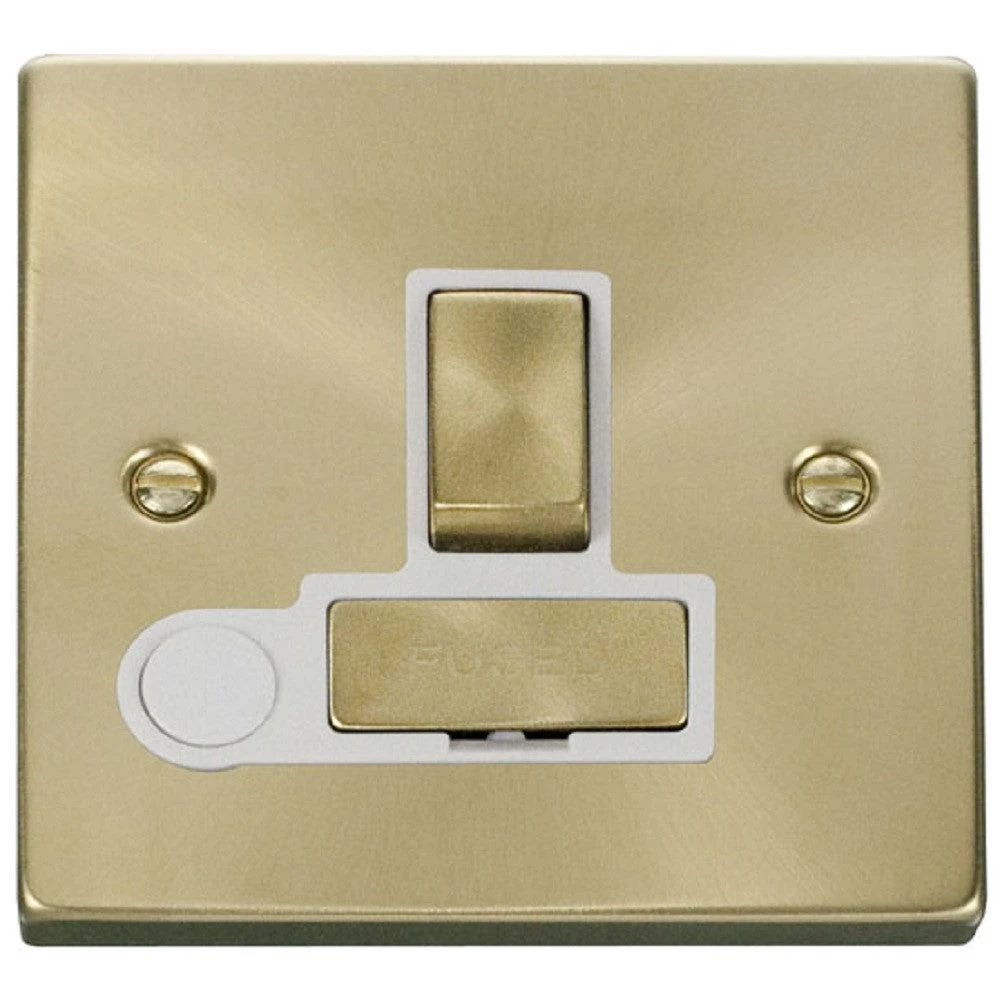 The VPSB551WH is a 13A Switched Spur with Flex from the Click Deco range by Scolmore, finished in satin brass with a white insert. The Click Deco range has a distinctive raised plate, squared edge design and is constructed from premium stainless steel for a long-lasting finish.